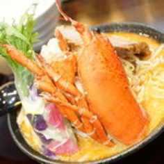 当店の名物は“極ラーメン”は10時間ローストした甘海老の頭を惜しげなく使った海老出汁は濃厚な味わいで、その香ばしい匂いが際立ちます。麺は全粒粉入りの太麺ストレートで、北海道産小麦の「春よ恋」を使用。特長的なのはその見た目。身がぎっしり詰まった厳選したオマール海老、ひき肉と食用花を巻いたさっぱりした食感の生春巻き、絶妙に炙った厚切りの特製チャーシュー、それらを器から溢れるくらいに豪華に盛っています。この色鮮やかな強烈なインパクトさが受けて、SNS映えするラーメンと来店者の間で評判になり、スマホで写真を撮っている姿がよく見られます。