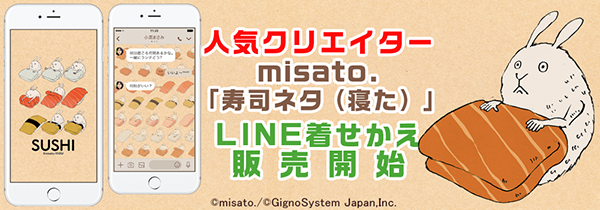 当社では、クリエイターのマネジメント事業を行っており、SNSで大人気のキャラクターのライセンスを管理しております。今回はマネジメントをしているクリエイターのmisato. (代表作:寿司ネタ(寝た))のLINE着せかえを販売開始。