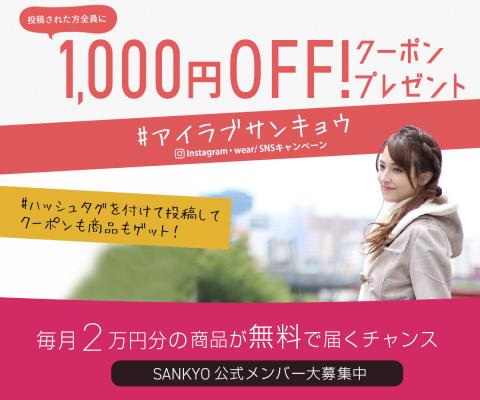 InstagramやWEARなどのSNSに弊社のアイテム撮影し「#アイラブサンキョウ」のハッシュタグを付けて投稿するだけで参加できます。