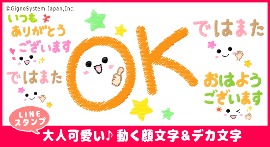 ジグノシステムジャパン株式会社(本社:東京都千代田区、代表取締役社長:沼尻一彦)は、LINE株式会社(本社:東京都新宿区、代表取締役社長:出澤剛)が運営するコミュニケーションアプリ「LINE」内のスタンプショップにて、2018年8月28日より「大人可愛い♪動く顔文字&デカ文字」のクリエイターズスタンプの配信を開始しました。