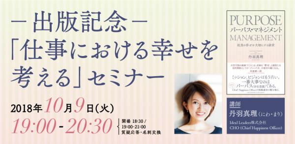 出版に伴い、2018年10月9日(火)に東京・八重洲ブックセンター本店にて、株式会社クロスメディア・マーケティング(本社:東京都渋谷区、代表取締役:小早川幸一郎)は、本書籍の著者である丹羽 真理(にわ・まり)氏による『パーパス・マネジメント――社員の幸せを大切にする経営』出版記念セミナーイベントを開催致します。