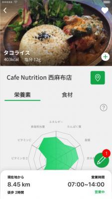 「NUTS.」は栄養成分情報を元に近くのお店の料理を検索したり食事の記録をつけることで不足栄養成分を補う料理の提案を行うなど、外食で気になる情報を「見える」ようにすることで安心・安全な食生活をサポートします。