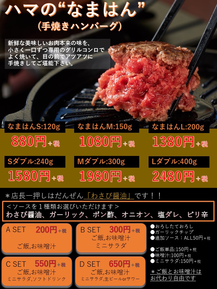 [旧業態名]「手焼き生ハンバーグ なまはん家」→[新業態名]「専用グリルコンロで、手焼きハンバーグ なまはん家」