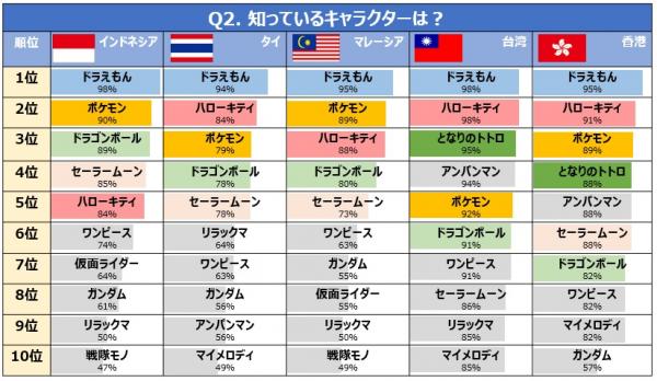 2. ダントツ1位はドラえもん、ポケモンも人気。