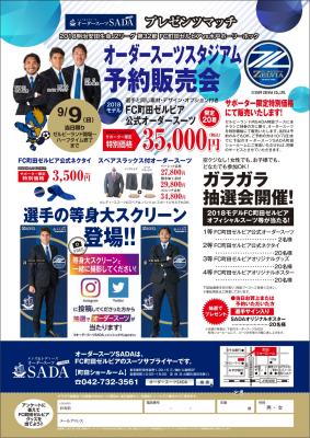 工場直販オーダースーツSADAは、9/9(日)にゼルビーランド内SADA特設ブースにて、開門からハーフタイム終了迄の約3時間、2018年モデル町田ゼルビア公式オーダースーツのスタジアム販売会を開催致します。