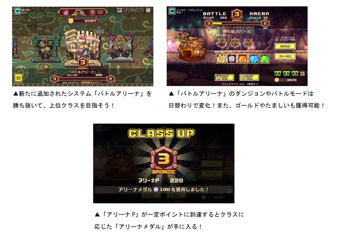 ダンジョンに新しい対戦システム「バトルアリーナ」を追加いたしました。