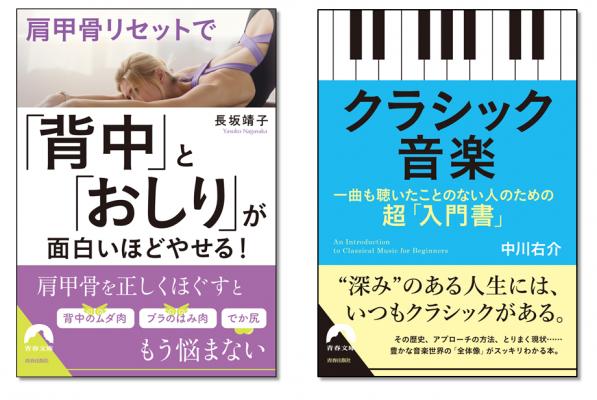 このたび、青春出版社は2018年9月8日に、『肩甲骨リセットで「背中」と「おしり」が面白いほどやせる!』(著・長坂靖子)、『クラシック音楽 一曲も聴いたことのない人のための超「入門書」』(著・中川右介)を発売いたします。
