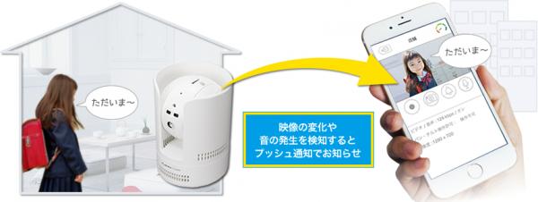 撮影している映像の変化を検知する動体検知機能と、音の発生をとらえる音声検知機能を搭載。検知したアラートはスマートフォンやタブレットへプッシュ通知することができます。