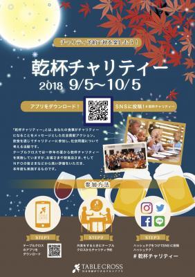 株式会社テーブルクロス(代表取締役:城宝薫 本社:東京都新宿区) が運営する社会貢献ができるグルメアプリ『テーブルクロス』は、2018年9月5日(水)に「チャリティ予約で秋を楽しもう!乾杯チャリティー2018」キャンペーンを開始したことを発表いたしました。
