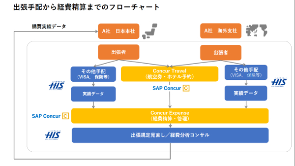 H.I.S.へ法人契約のある企業様が日本と海外に法人を持ち、各社別々の経費管理の体制だった場合、コンカー社のシステム(SAP Concur)を日本と海外で繋ぐことで、国内外のグループ全体で情報を共通化し、得られるデータを統一し、更なるガバナンス強化を図ることが可能となります。まずは、日本においてグローバルに展開する企業の戦略パートナーとして、国内外のソリューションビジネスの拡大を目指してまいります。