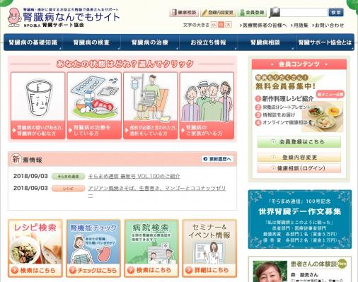 NPO法人腎臓サポート協会では、ホームページ『腎臓病なんでもサイト』などを通じて、腎臓病患者さんとそのご家族に役立つ情報を提供しています。また会員の方は無料で腎臓病のオンライン相談を行っております。
