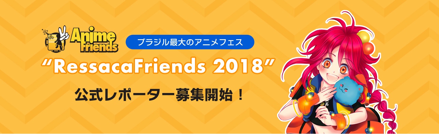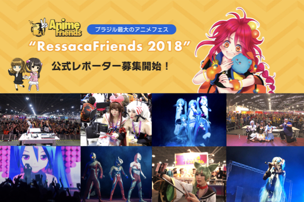 9月6日、ブラジルで開催される巨大アニメイベント「RessacaFriends 2018(ヘサカフレンズ)」は公式レポーターの募集を開始した。