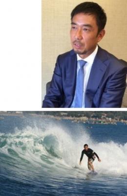 週2回は、4時30分には家を出て、6時の茨城県鹿嶋市付近にてサーフィンをして出社。また、奄美大島やバリ島を中心にサーフトリップを年間12回以上おこなっている。