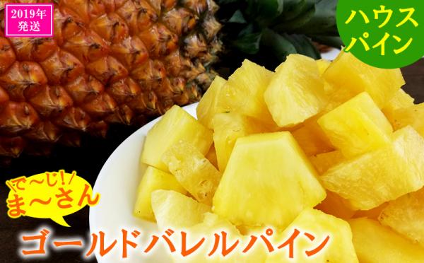 ハウス栽培パインです 沖縄県の北部に位置する緑豊かな「ヤンバル」で栽培された生食用の極上なゴールドバレル! 完熟状態なゴールドバレルを発送いたしますので、届いたらすぐにお召し上がりください。 柔らかい果肉から溢れ出す果汁、噛むたびに甘さが口いっぱいに広がります。 糖度が非常に高く酸味がほとんどない最高品質のゴールドバレルパインです。 パインの中でも特に甘い!ゴールドバレルパイン ゴールドバレルは、パインのなかで比較的新しい品種です。 果肉の色が輝いてみえることから「Gold(ゴールド)」、樽のような形の「Barreel(バレル)」から「ゴールドバレル」と名付けられました。 ゴールドバレルの最大の特徴は「大きさ」と「甘さ」です。 大きさ(重さ)はおよそ1.5Kg~2Kgと、パインの中でも大きいのが特徴です。 そして、その甘さは格別!他のパインと比べて酸味が少なく、まるでシロップに漬けた缶詰のパインのような甘さが味わえます。 お届けするゴールドバレルは、ベテラン農家さんが丁寧に一つひとつ育てています。 最高品質のゴールドバレルを是非ご賞味下さい!