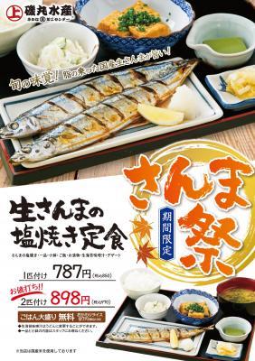 海鮮浜焼き居酒屋「磯丸水産」などを展開するSFPホールディングス株式会社 (本社:東京都世田谷区玉 川二丁目21番1号二子玉川ライズ・オフィス10階 代表取締役社長 佐藤 誠)は、秋の味覚として人気のさんまをたっぷり味わっていただける「さんま祭」を2018年9月10日(月)~10月下旬まで期間限定で開催いたします。