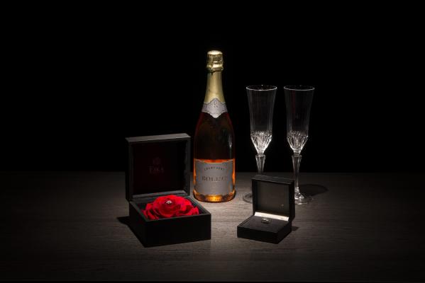 EIKA大阪ギャラリーでは、フランス・シャンパーニュ地方で150年の歴史を持ち、希少なワインだけを提供するシャンパンブランド「BOLL & CIE(ボールアンドシー)」社製の最高級シャンパンを、バーカウンターご予約のお客様へグラスでプレゼントします。華やかな香りと極上の舌触りを持つシャンパンを楽しみながら、ローズとダイヤモンドジュエリーとの究極体験をお楽しみください。※数には限りがございます。※成人の方のみです。