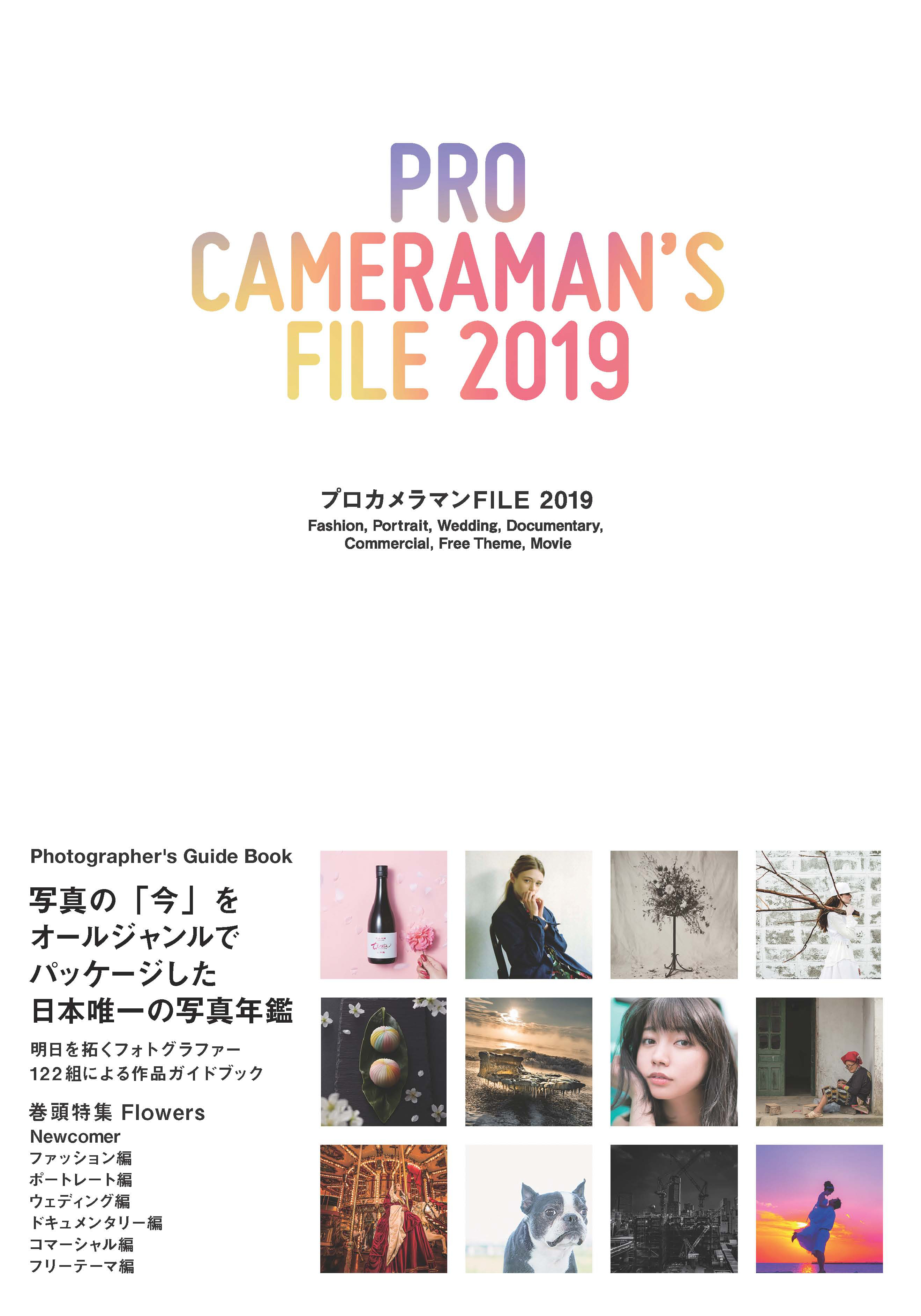 本書「プロカメラマンFILE 2019」は、日本の写真の最先端を走るフォトグラファーの122組の作品を、オールジャンルで紹介するガイドブックです。本書で7年目の刊行となり、作品内容をより読者に分かりやすく伝えるべく、掲載ジャンルを一新しました。
