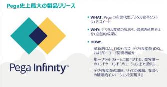 世界の大手企業のカスタマー エンゲージメントとデジタルプロセスオートメーションを強化するソフトウェア会社の Pegasystems Inc. (NASDAQ: PEGA)の日本法人、ペガジャパン株式会社(東京都千代田区、以下:「Pega」 は、次世代のデジタル変革ソフトウェア スイート、Pega InfinityTM に包含される先進機能を本日より順次提供します。マーケットの最先端を行く Pega のカスタマー エンゲージメント アプリケーションやデジタル プロセス オートメーション (DPA) プラットフォームの大幅な機能強化により、Pega InfinityTMは企業のあらゆる分野においてデジタル変革を加速させ、顧客の期待を継続的に上回ることができるようにします。