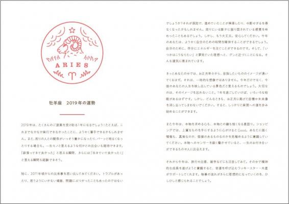 日本出版販売株式会社(代表取締役社長:平林 彰、略称:日販)は、人気占い師による12星座別の占いを毎日楽しめる手帳『Fortune Diary 2019』(2019年1月始まり、全12種類)を発売します。