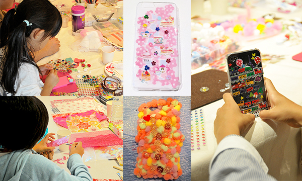 500円でパーツ乗せ放題。おもちゃ、ビーズで作るiPhoneケースのワンコインワークショップのほか、コクヨキャンパスノートを使ったデコノート、棒針編みのちび靴下ストラップ作り、Tシャツから作る可愛いミニ草履「半なか」づくりワークショップなど盛りだくさん。