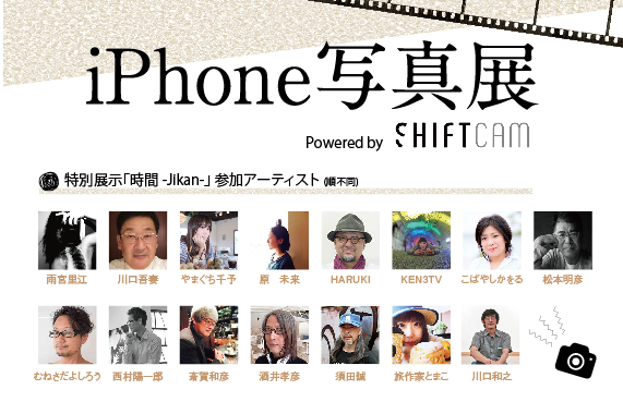 今年で6回目を迎えるiPhoneで撮影・加工された写真の展示会「iPhone写真展」を同時開催。特別展示「時間/Jikan ~15人のクリエイターがiPhoneで撮った写真展~」と題して、プロカメラマンと、様々なジャンルのクリエイターが「時間」をテーマにした作品を展示します。作品は全て、レンズ一体型iPhoneケース「ShiftCam」で撮影されたもの。iPhoneケース展、iPhone写真展、どちらも合わせてお楽しみください。