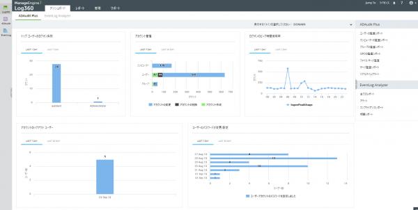 Log360は、イベントログ・Syslog・統合ログ管理ソフト「ManageEngine EventLog Analyzer(マネージエンジン イベントログアナライザー、以下、EventLog Analyzer)」とActive Directory監査レポートツール「ManageEngine ADAudit Plus(マネージエンジン エーディーオーディット プラス、以下、ADAudit Plus)」が統合された製品です。従来は「EventLog Analyzer」と「ADAudit Plus」を各コンソール画面にて運用、管理を行わなければなりませんでした。しかしながら、今回リリースいたしました「Log360」では、製品の統合により一つのコンソールから一貫したログ管理および監査を実行できるため、操作性が良く効率的です。また、導入時においてもサーバー1台で利用開始ができるため、2製品分のサーバーを用意する手間がかかりません。
