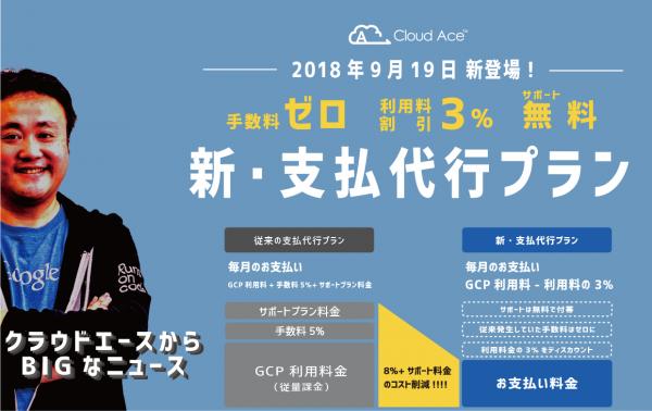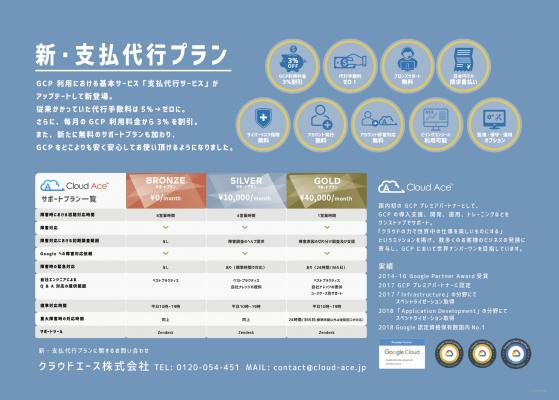 Google Cloud Platform (以下 GCP )のプレミアパートナーである、クラウドエース株式会社(本社:東京都千代田区、代表取締役:吉積礼敏)は、GCP へのクレジット支払を代行し日本円で請求書を発行する『支払代行サービス』の内容を2018年9月19日より大幅にアップデートしました。