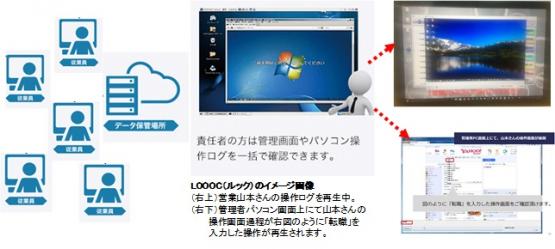 情報セキュリティ監視ソフト「LOOOC(ルック)」は、社員のパソコン全操作履歴をすべて画面キャプチャー及びキータイプログで取得し、動画ログとして再現が可能です。このシステムを導入することにより、社員がパソコンで何を閲覧していたのか画面上に再生されるため、視覚的に把握することが可能です。またどんな入力が行われていたのかなどのキーワード検索や、指定外のUSBの差し込みによるデータ移行記録、またファイルの新規作成・削除・変更等のファイル操作ログ、データ改ざん検知など、具体的な操作内容を把握することができます。これにより社員の私的なウェブサイト閲覧が減り、生産性向上につながります。また、内部不正に対する抑止効果や情報漏えい・改ざんの防止、セキュリティーインシデント発生時の追跡調査でも高いパフォーマンスを発揮します。