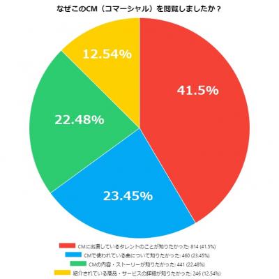 下記ランキングは「なぜこのCM(コマーシャル)を閲覧しましたか?」という質問に対しての調査結果をランキング形式にてまとめたものです。