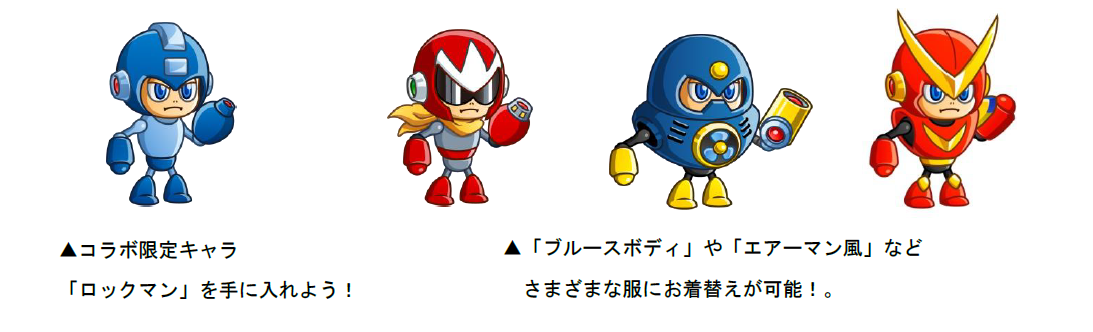 2018年9月28日(金)からのコラボ期間中、EGGショップにコラボ限定キャラ「ロックマン」が再登場!キャラの研究開発を行なうことで、さまざまな服にお着替えできます。