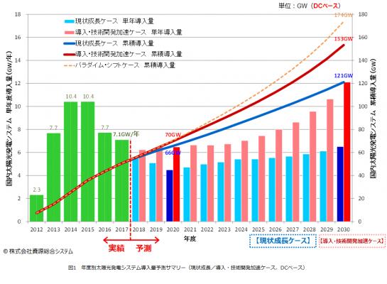 太陽光発電関連事業に関するコンサルティング業務を行う株式会社資源総合システム(本社:東京都中央区、代表取締役:一木修)は、2018年9月25日(火)に「日本市場における2030年に向けた太陽光発電導入量予測(2018~19年版)」を発刊しました。