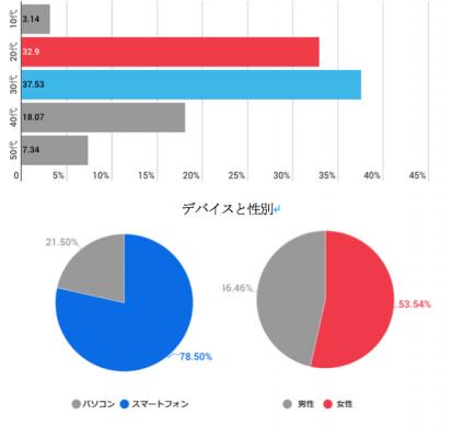 さらに、以下に示すデータより、バケーションで日本旅行を選択する韓国人の大半が20代~30代、検索デバイスはスマートフォンを好む傾向が分かりました。