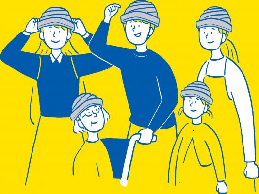 簡易保護帽の「でるキャップ」は、「普段から家族どうしで防災準備を!一人にひとつずつ、まず安全に逃げるための必須アイテム」をコンセプトとし、自宅やオフィス、学校や病院などの公共施設でも対応できるラインナップを展開しています。