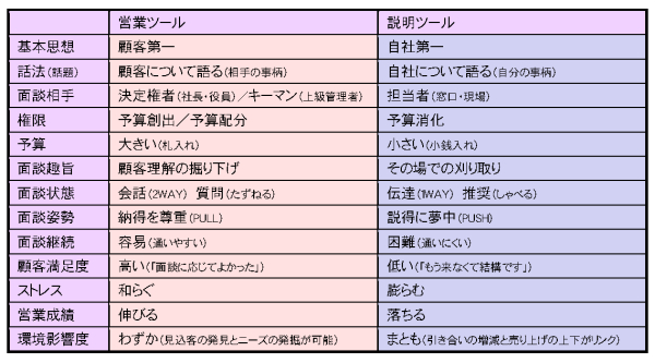 実は、営業ツールと説明ツールは性格がまるで対照的です。