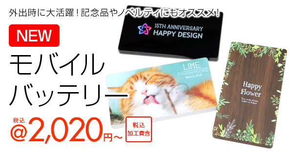 オリジナルプリント.jpでは、モバイルバッテリーにフルカラーで全面印刷ができます。