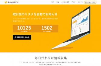 提携サービスはアラームボックス事業で、SNS、ブログ、口コミサイト等に書込みされた企業の風評等を広範囲で収集、独自解析をしたうえ、定性的な信用情報を会員に通知。多彩な情報から企業の信用情報を5段階で表示し、会員は待っているだけで定期的に登録先の信用情報を入手でき、売掛金の回収リスクを未然に防止することが可能になります。