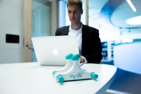 「mychi(マイチー)」は首や肩のこり、緊張状態などの悩みをたった1分、自宅やオフィスで緩和できる指圧代用器です。