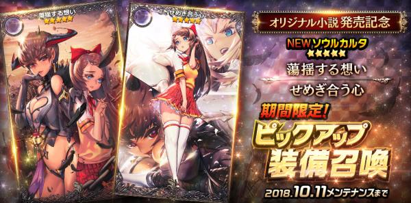 オリジナル小説発売記念!小説口絵に使用されている美麗イラストがソウルカルタ『蕩揺する想い』、『せめぎ合う心』としてピックアップ装備召喚に登場!!