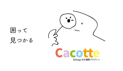 インデザイン変更履歴表示プラグイン・CacotteはAdobe InDesign のドキュメントにおいて、テキストフレーム内の文字の変更箇所のグリッドに色付けする(カコミ枠を付ける)プラグインです。キータッチした箇所に色が付くことで視認性が向上し、ミスの軽減・校正の時間短縮が期待できます。