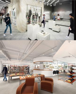 1Fには「CENTER STAGE」、2Fには「FEATURE WALL」と呼ばれるスペースを設置し、ブランドごとのシーズンフォーカスアイテムや、ブランドMIXのスタイル提案など、マルチなPOP UPスペースとして使用いたします。