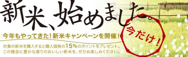 秋の味覚としても人気の高い新米。この時期ならではのおいしい新米を、ぜひ召し上がっていただきたく、新米をご購入時に購入価格の15%をポイント還元(付与)する「新米キャンペーン」を開催。