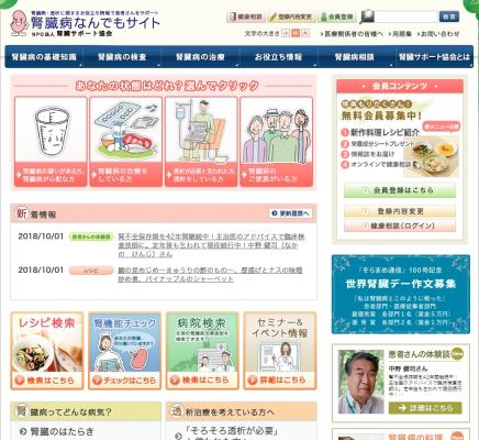 NPO法人腎臓サポート協会では、ホームページ『腎臓病なんでもサイト』などを通じて、腎臓病患者さんとそのご家