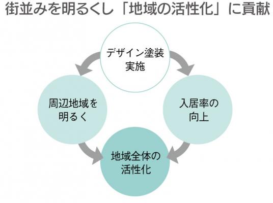 デザイン塗装はただ単に色を塗るだけではなく、模様を施すことで建物に高級感、明るさを与えるサービスです。グッドデザイン賞を受賞したサービスとして、多くの消費者の方にデザイン塗装の魅力をお伝えし、様々な建物を明るい仕上りにしていくことで消費者や地域の方にご満足いただけるような塗装工事を提供してまいります。