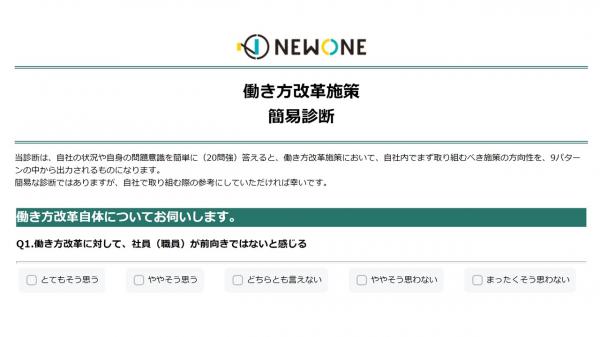 「働き方改革施策」簡易診断リンク先:https://new-one.co.jp/survey/