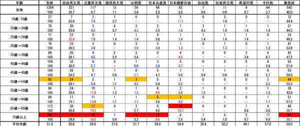 1.「若年層に強い自民党」というよりは「高齢層に強い立憲民主党」