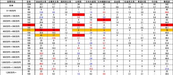 2.立憲民主党支持者は就業時に年収が高かったと推測