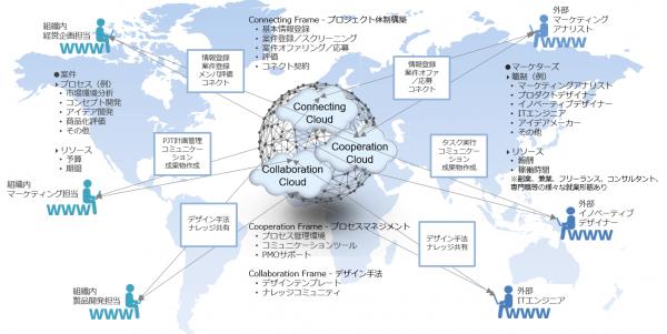 業種、組織を超えて内外のマーケター、エンジニアをオープンに結びつけ(Connecting)、共同(Cooperation)、協力(Collaboration)を通じて独創的な新製品・サービス、事業開発を実現するマザー・マーケティングサービスmo4ma(mothership for marketers)