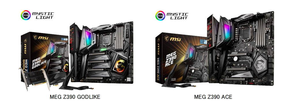 一方、MEG Z390 ACEは、13フェーズのVRMを採用するとともに、GODLIKE同様ヒートシンク部にミラー反射効果による幻想的なLEDライティングを実現したMystic Light Infinityを搭載し、次世代CPUの性能を最大限引き出します。