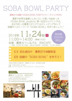 今までのお蕎麦屋さんには無い層(女性や学生といった若い世代)をターゲットに、ヘルシーフードとしての蕎麦を広めて世界を健康にしたいという想いで立ち上げた“SOBA BOWL project”が主催する第一回目のイベントです。発足から2カ月で約20店舗(鹿児島から仙台、海外も含む)の参加を頂き、各店舗で“SOBA BOWL”という商品を提供していただいております。