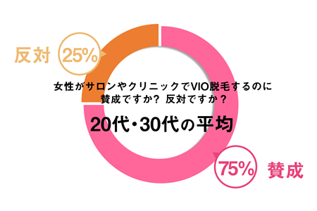 「Q.女性がサロンやクリニックでVIO脱毛するのに賛成ですか?反対ですか?」という質問では、75%の男性が「賛成」と回答しました。